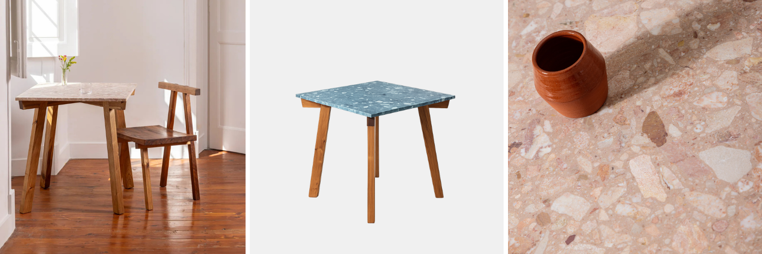 A Mesa Terra lembra-nos um tipo de mesa tradicional portuguesa que se encontrava nas tabernas e cozinhas antigas. Espaços onde muitas gerações se sentaram sem pensar no design da peça. Tampo em pedra, base estável, sem outra ambição além de ser funcional e resistente. Nunca foi tendência, mas faz parte das nossas memórias.
